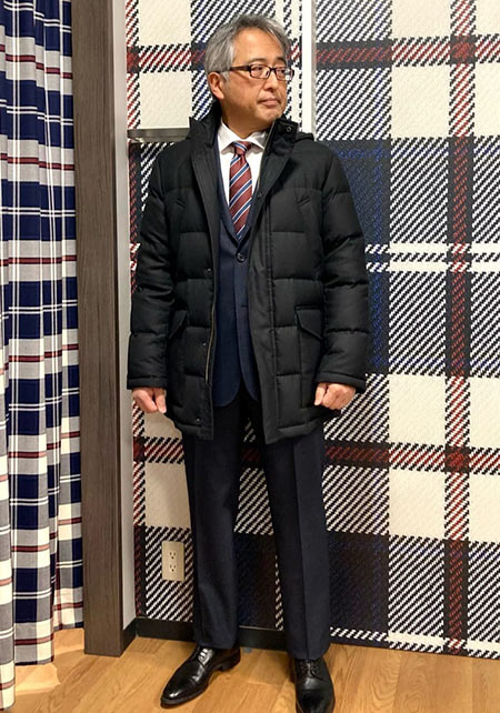 ジャケットにダウンベストを羽織った「ジャッカジレ」スタイル。