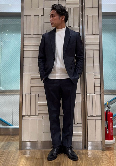 靴以外は全てAOKI。スーツ然としたキレイなシルエットが活かせるのも、AOKIならでは。