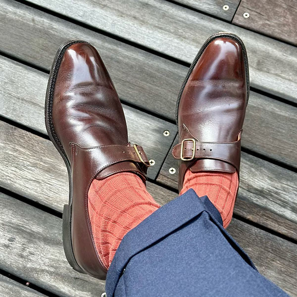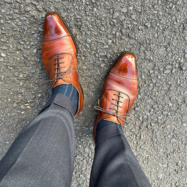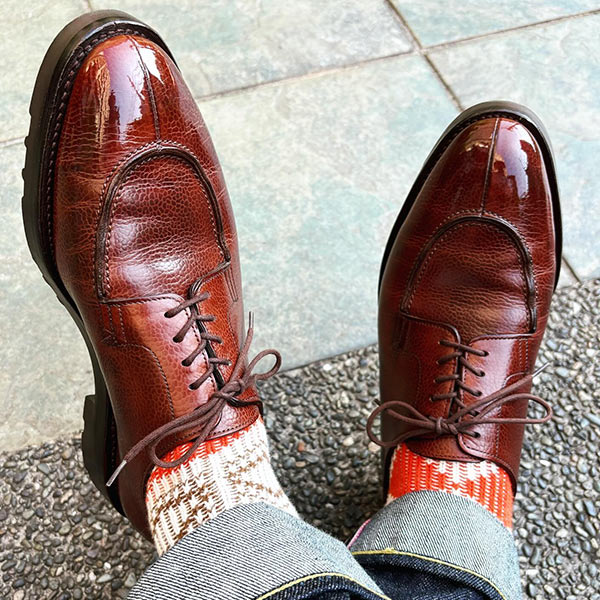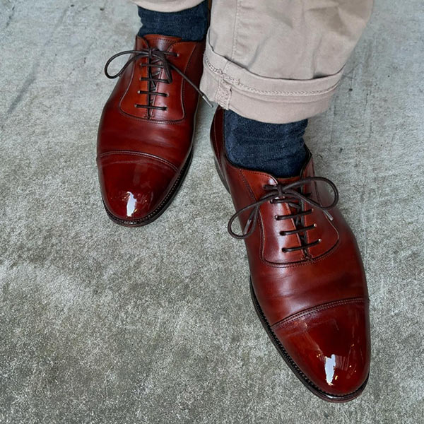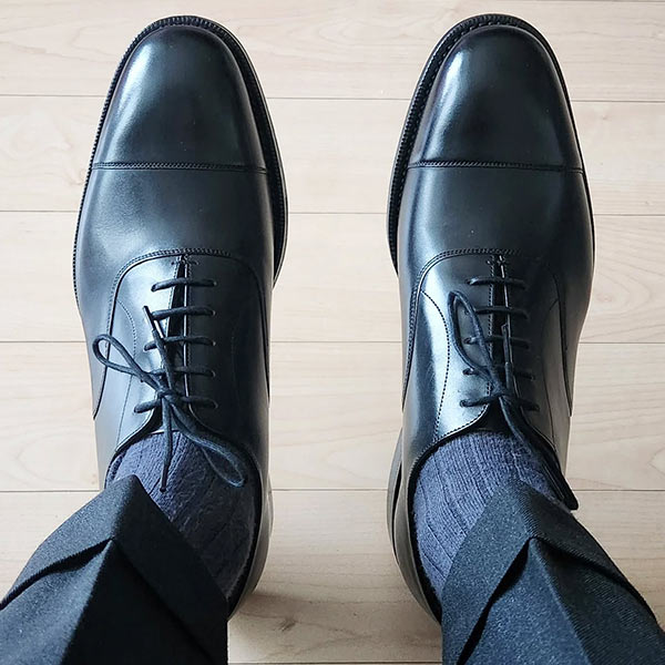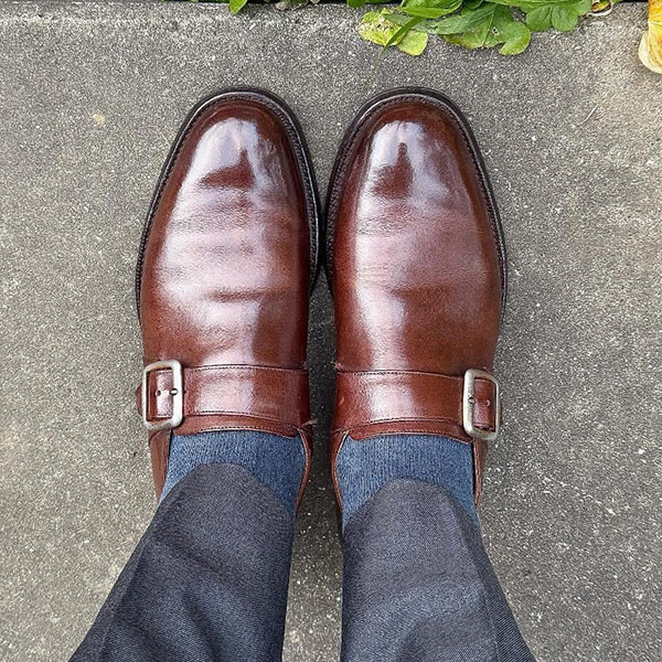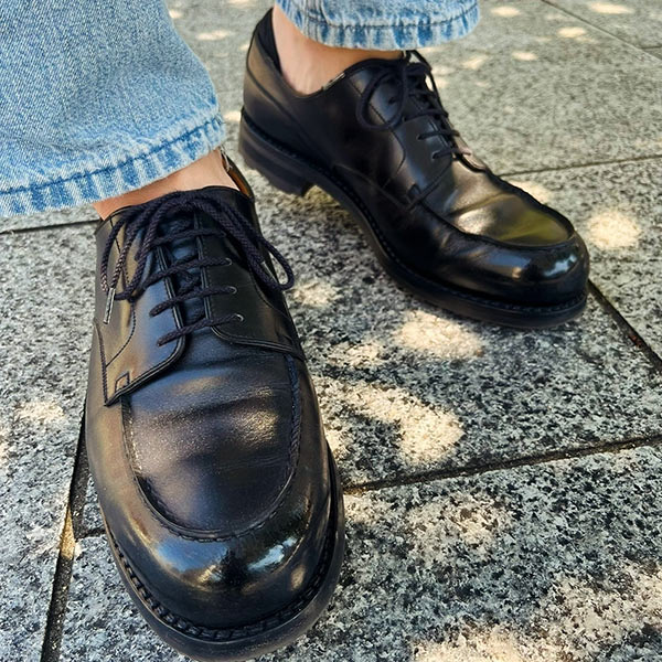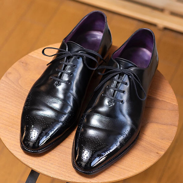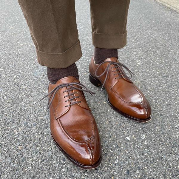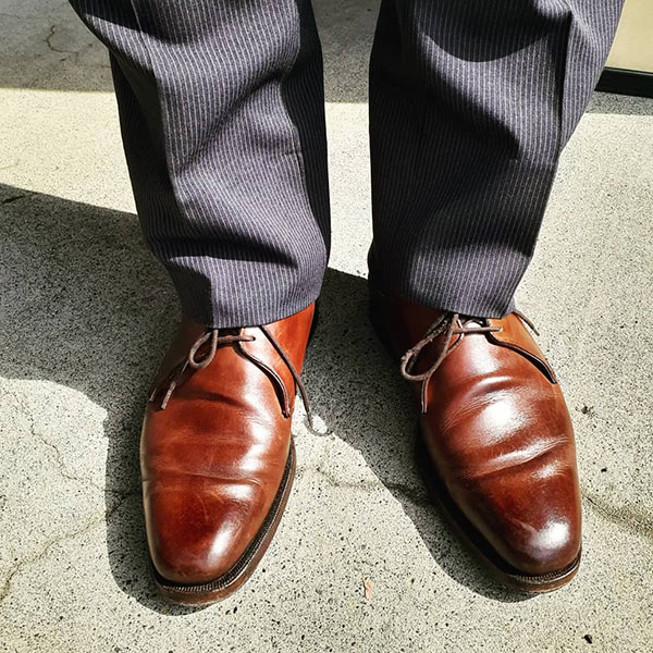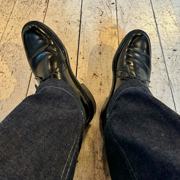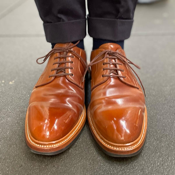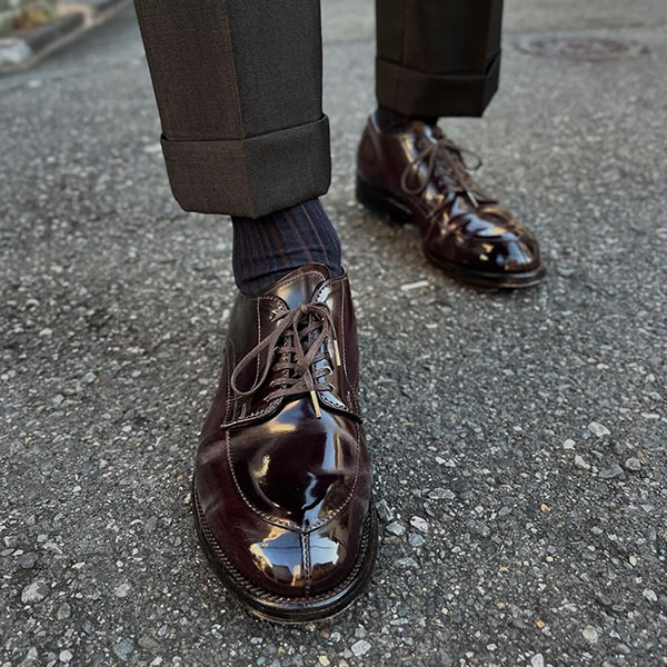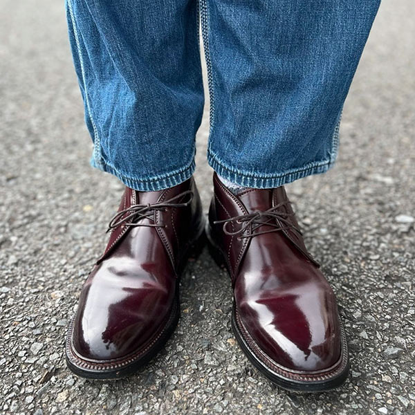 アッパーの素材は最高品質のコードバンを使用している。履き込むほどに味わいの増す1足で、これからも末永く使い続けていける。