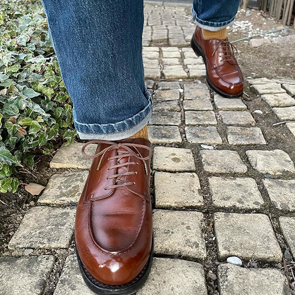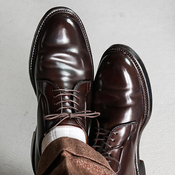 アッパーはシェルコードバン、ダブルソール仕様。スタイルを選ばずコーディネートできる普遍的なモデル。