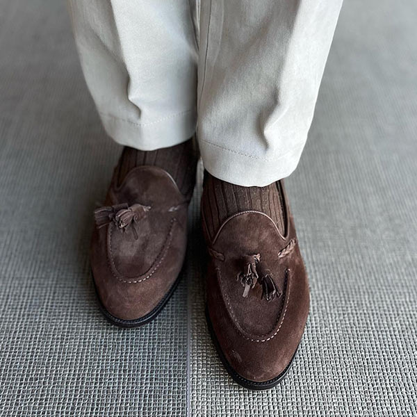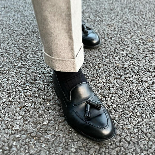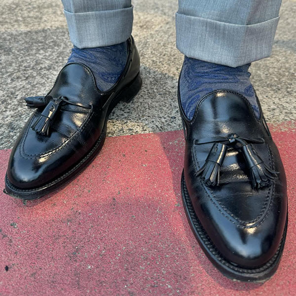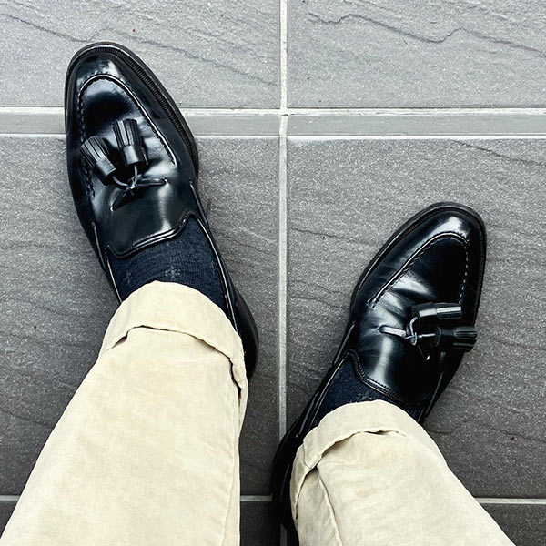細身の木型「アバディーンラスト」を採用。シンプルにあしらわれた藻か縫いステッチと高貴なタッセルが、華やかな雰囲気を演出する。