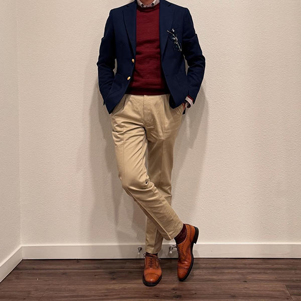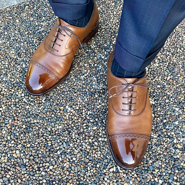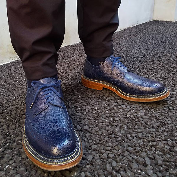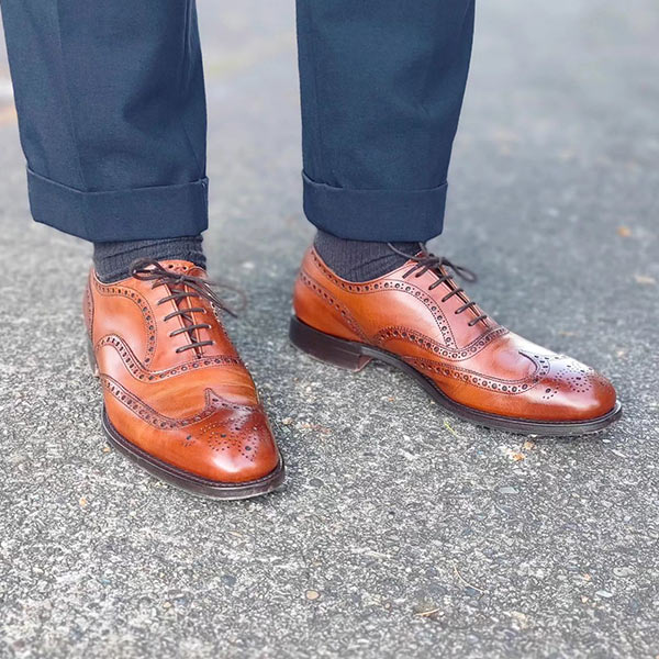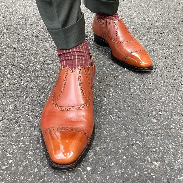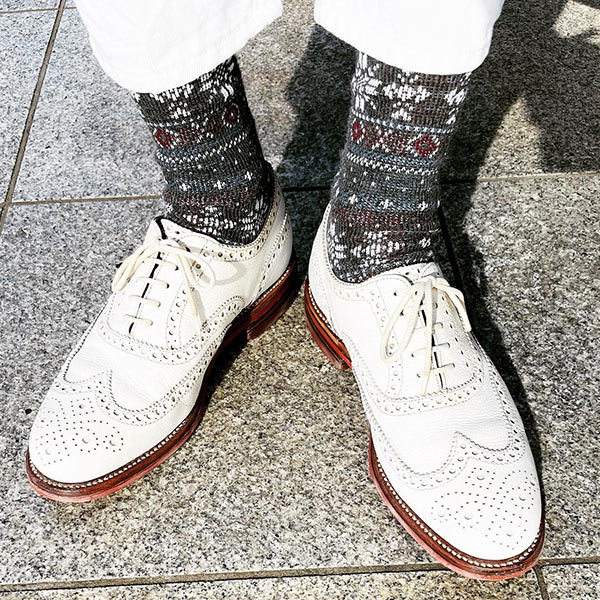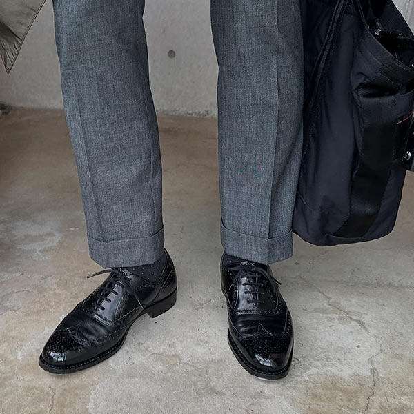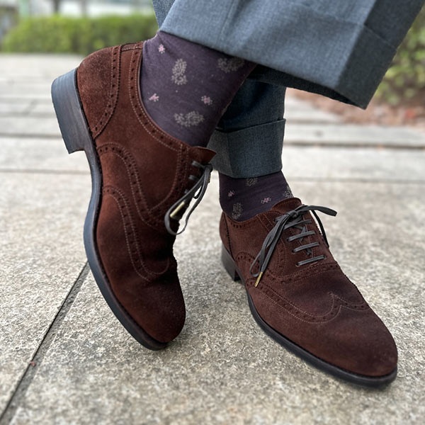 ドレスとカジュアルを融合させた外羽根サドルのウイングチップ。イタリアらしいセクシーな魅力を持ち、ビジネスシーンにおいても足元が重たくならずセンスを上げてくれる。