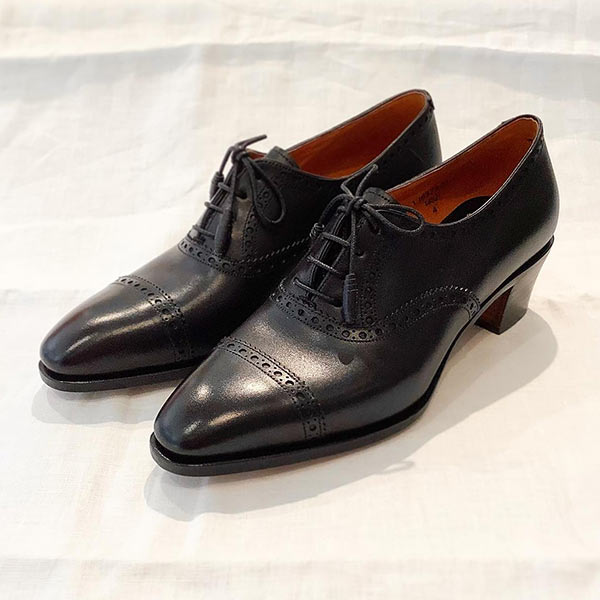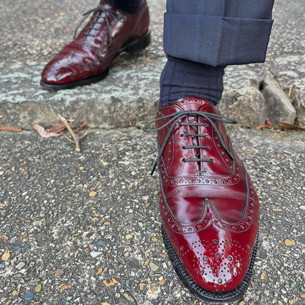 踵まで連なる華やかな穴飾りと、コバが大きくせり出した力強いフォルムは、古典的なアメリカ靴の象徴。アッパーには貝のような輝きを放つシェルコードバンを、木型に「バリーラスト」を使用。