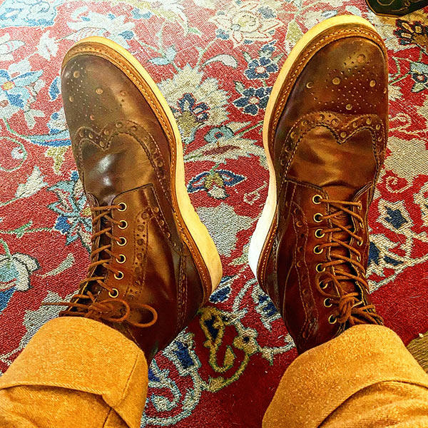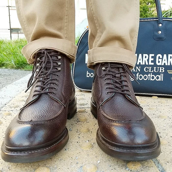 アッパーに希少なコードバン素材を贅沢に使用したブルーチャータイプのウイングチップブーツ。ラストはR2010でダブルソール仕様。鈍く輝く光沢は唯一無二の存在。