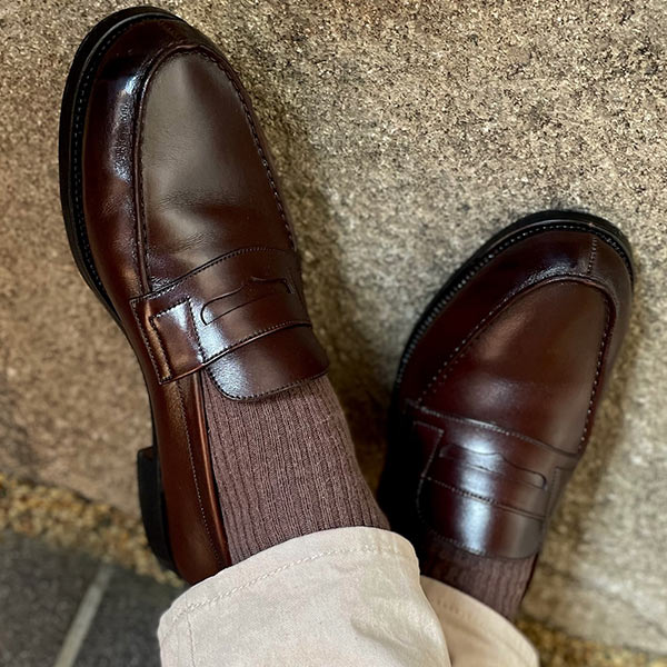 力強く美しいシェルコートバンを用い、トラッドな佇まいが魅力的なこの「#664」は、現存するタッセルローファーの原点になったと言われる。