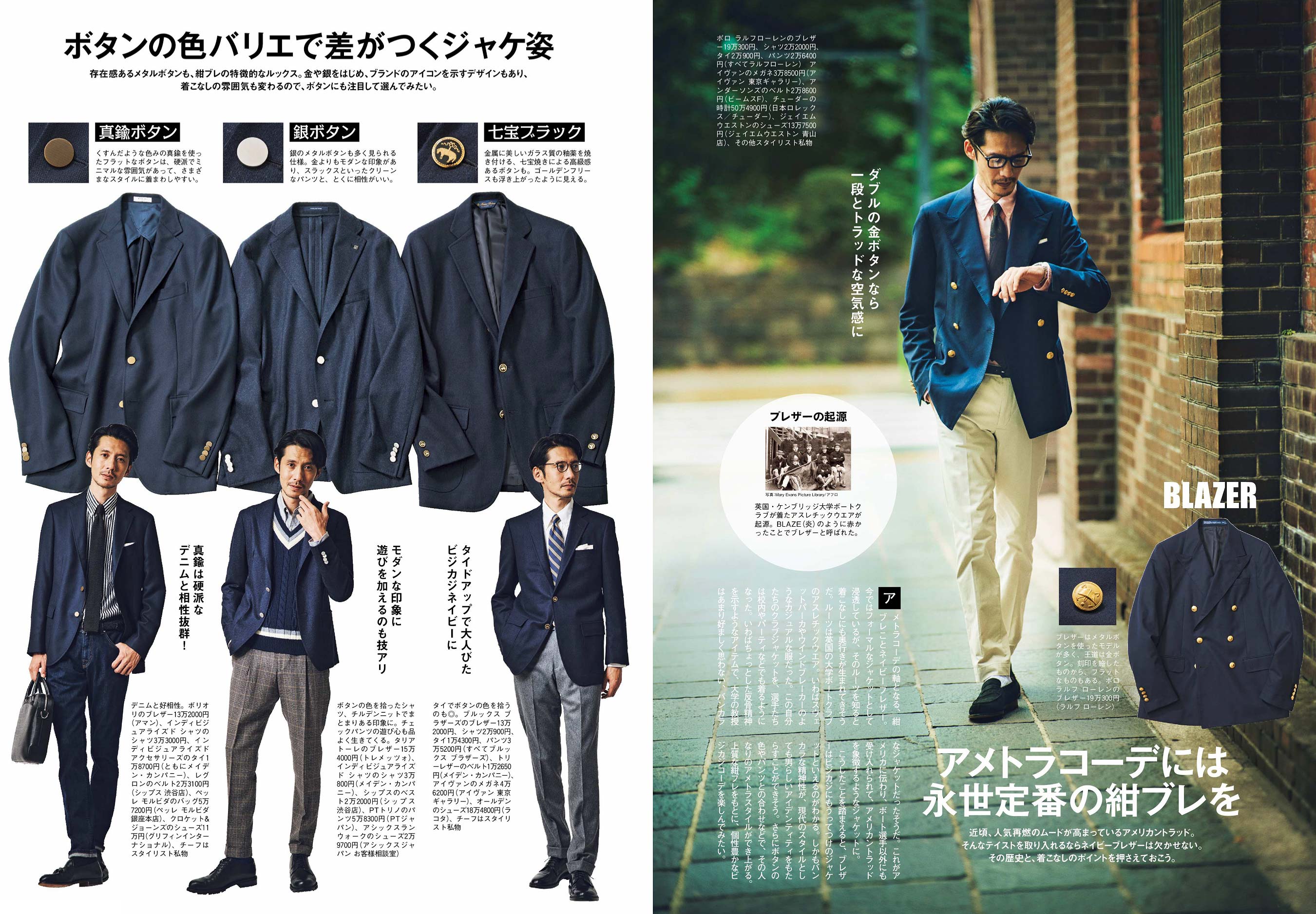 アメトラを体現するにあたり欠かせないのがネイビーブレザー、通称「紺ブレ」。