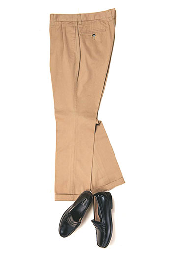アメトラを体現する王道の組み合わせ。基本にして最強です。1960年代以降、アメトラにおけるデイリーシューズの地位を築いたG.H.BASSのコインローファーは、マイケル・ジャクソンも愛用。