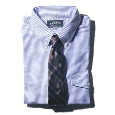 王道スタイルは「白シャツ×レジメンタルタイ」