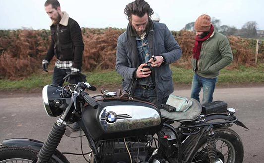 モテる男のワードローブをテーマにしたファッションブランド「ルイス」のライダースジャケットを着用したバイクスタイル。