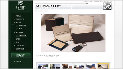スーツやジャケットに収納することを考えた「薄い財布」を展開する日本ブランドです。