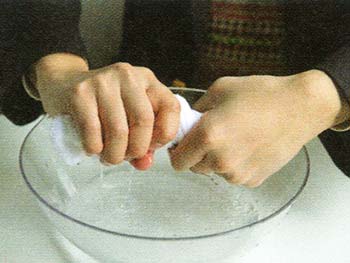 道具は一般的なタオルでOK。しっかりと水に浸してから、硬く絞る。