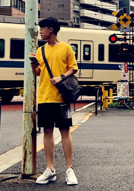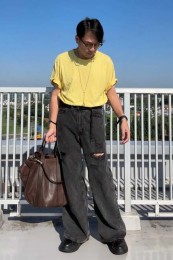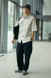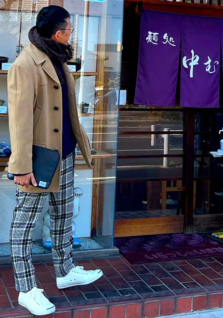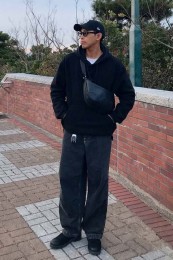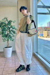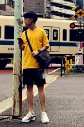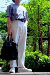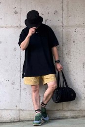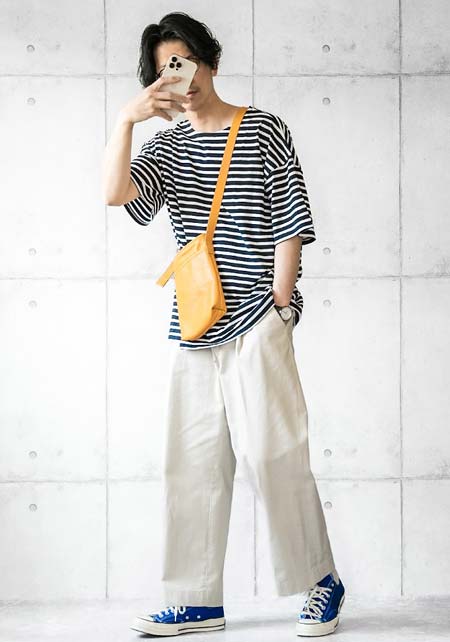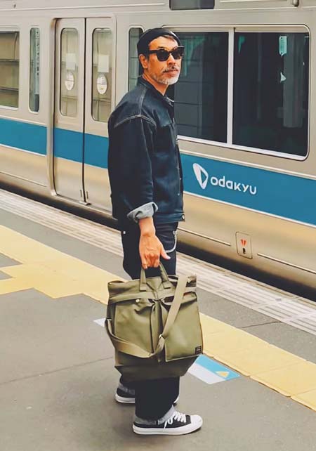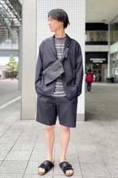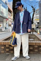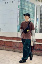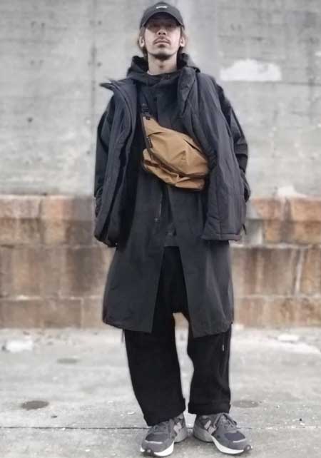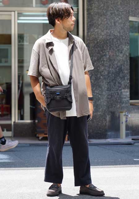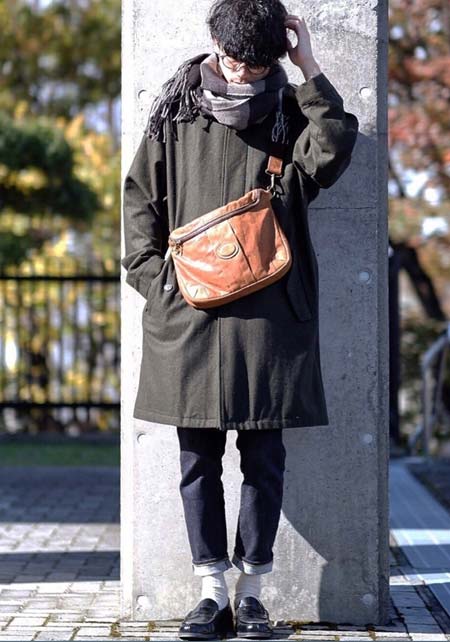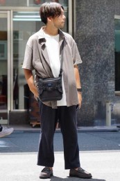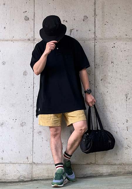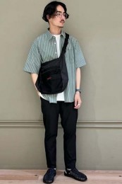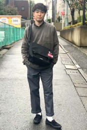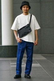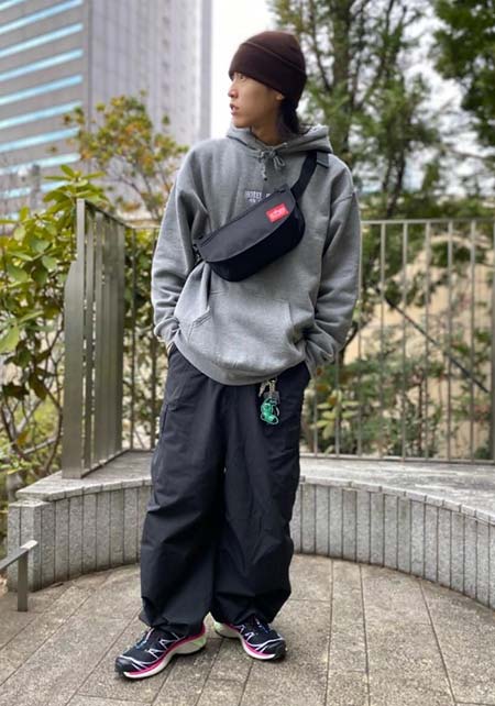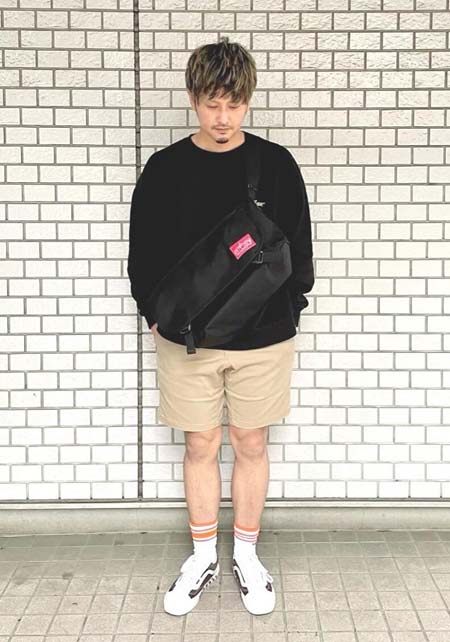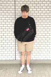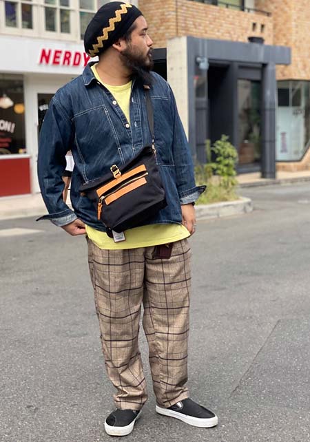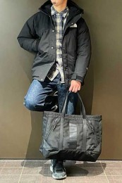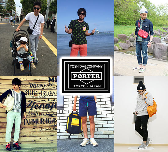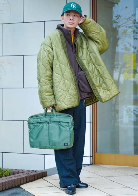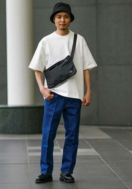 ポーター×カジュアルバッグのおしゃれな着こなし