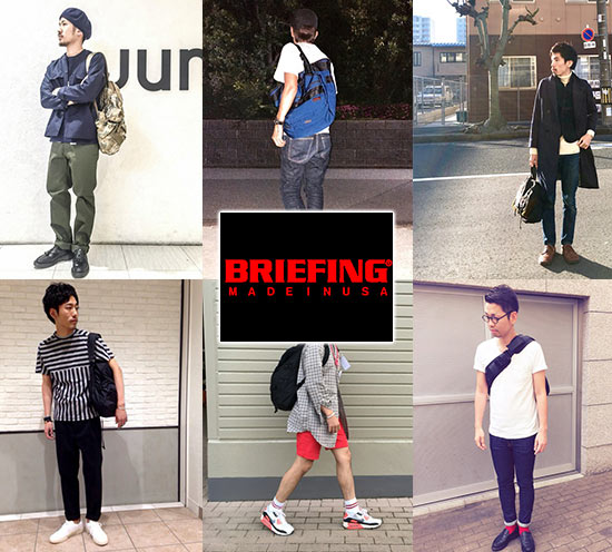 ブリーフィング×カジュアルバッグのおしゃれな着こなし