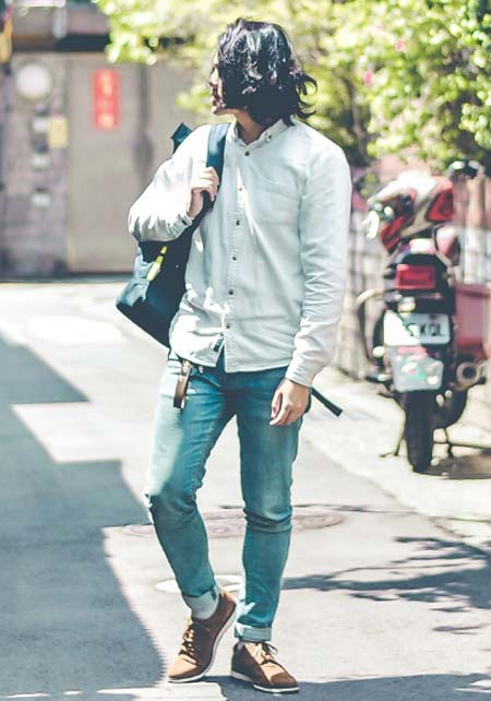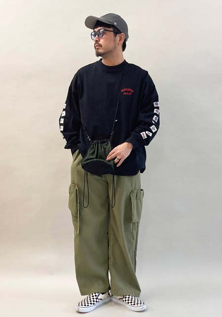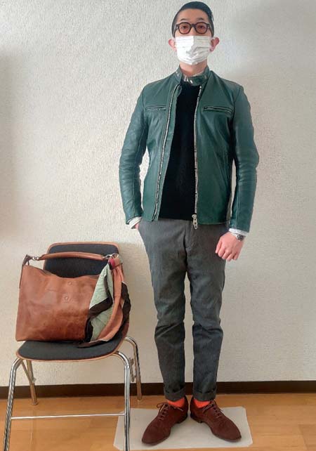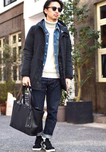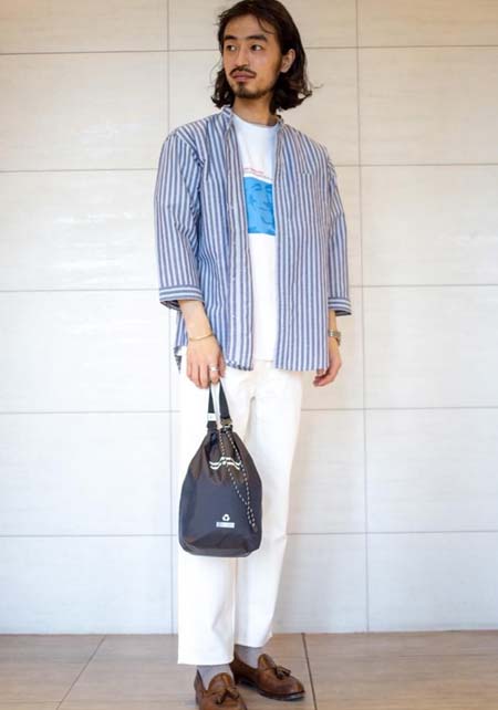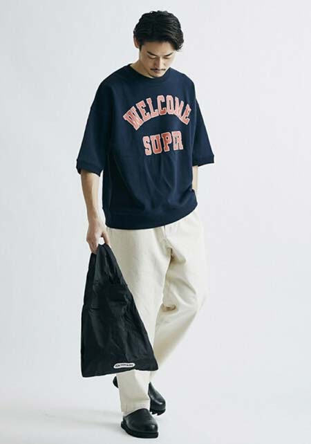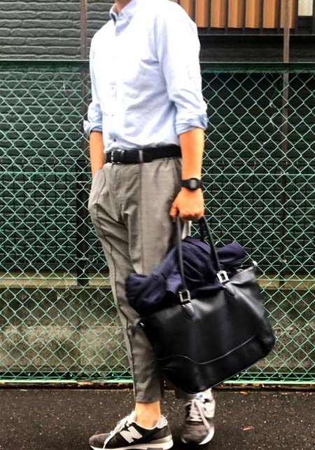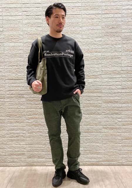 クリード×カジュアルバッグのおしゃれな着こなし