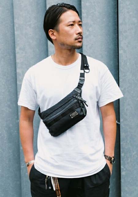 休日の外出に最適な肩掛けして使えるボディバッグ。十分な機能性と収納力を備え、コーディネートのアクセントにも活躍。