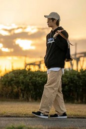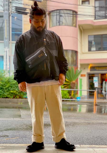 マスターピース×カジュアルバッグのおしゃれな着こなし