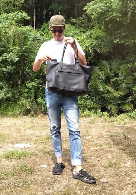 こちらは女性でも使えるサイズ感なので「お揃い」使いもOK。旅行のサブバッグにも使えます。