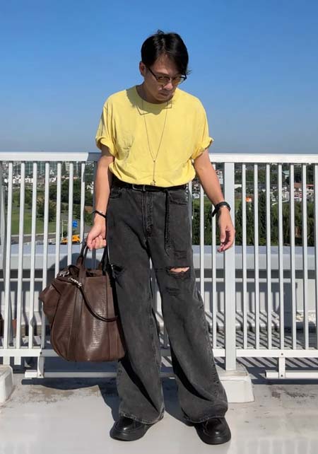 ダニエル&ボブ×カジュアルバッグのおしゃれな着こなし