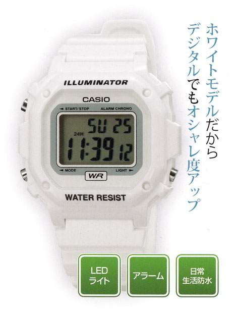 特殊な機能は付いていないがデジタルながらホワイトモデルなので、ベタなデジタルタイプよりも服装に合わせやすい。海外モデル。