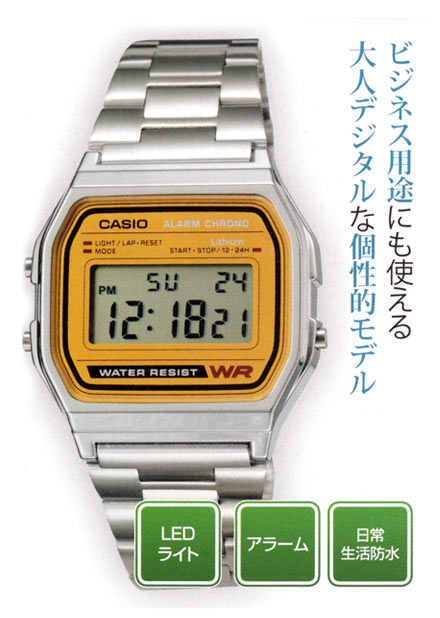 カシオといえばデジタルというイメージが強いですが、このモデルはまさにイメージどおりのデジタルモデル。懐かしい雰囲気を楽しめます。