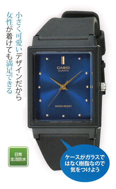 先のMQ-24-9Bの兄弟モデル。盤面に違いがあるが、ほぼ同じ仕様となっている。ベルトと盤面が黒なので主張せず使いやすい。海外モデル。