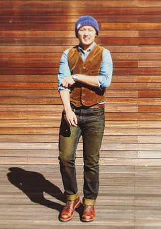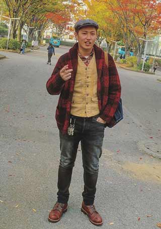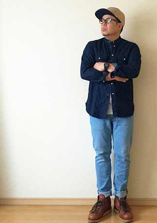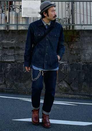 「カバーオール×チノパン」というワーク直球の足元を支えるのは、チペワのプレーンブーツ。無骨なスタイルだってジャケットだって似合う汎用性の高さはピカイチ!