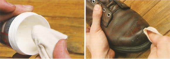 ヴァンプやバックステイまで、しっかりとミンクオイルを行き渡らせます。