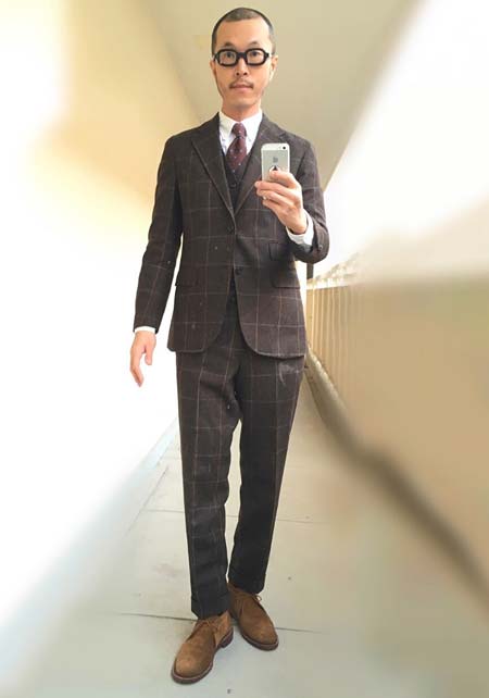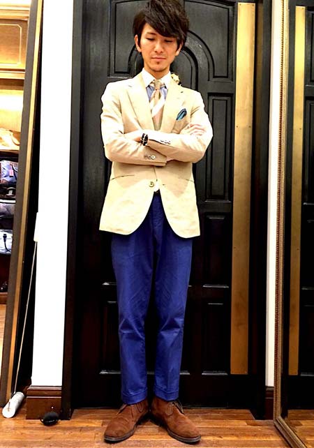 ちなみにチャッカは今どきのスリムなスーツ(パンツ)とも相性が良し。