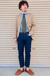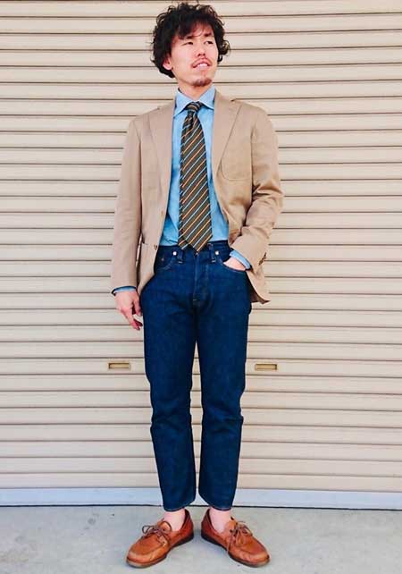 トップサイダーは、紺ジャケを使ったアメトラとの相性も抜群です。