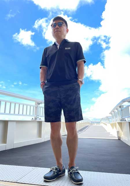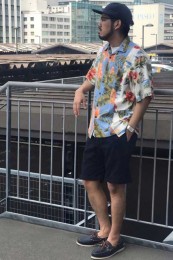 夏の定番、ポロシャツ×ショーツの着こなしにパラブーツのデッキシューズを。 程よく高級感があり、大人の方にもマッチします。