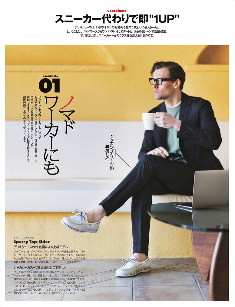 きれいめなテイストに、白のデッキが映える春のコーディネート。
