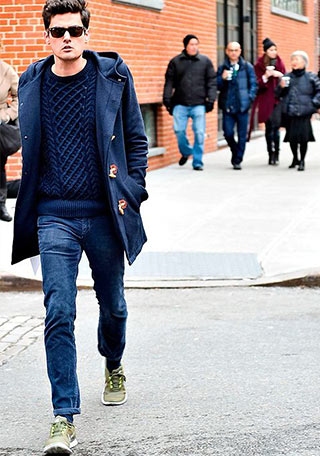 カラフルな冬小物をプラスすれば、見慣れたネイビーダッフルも新鮮な表情に。