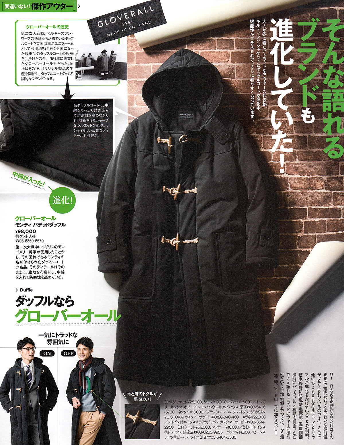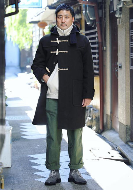 グローバーオール×ダッフルコートの着こなし