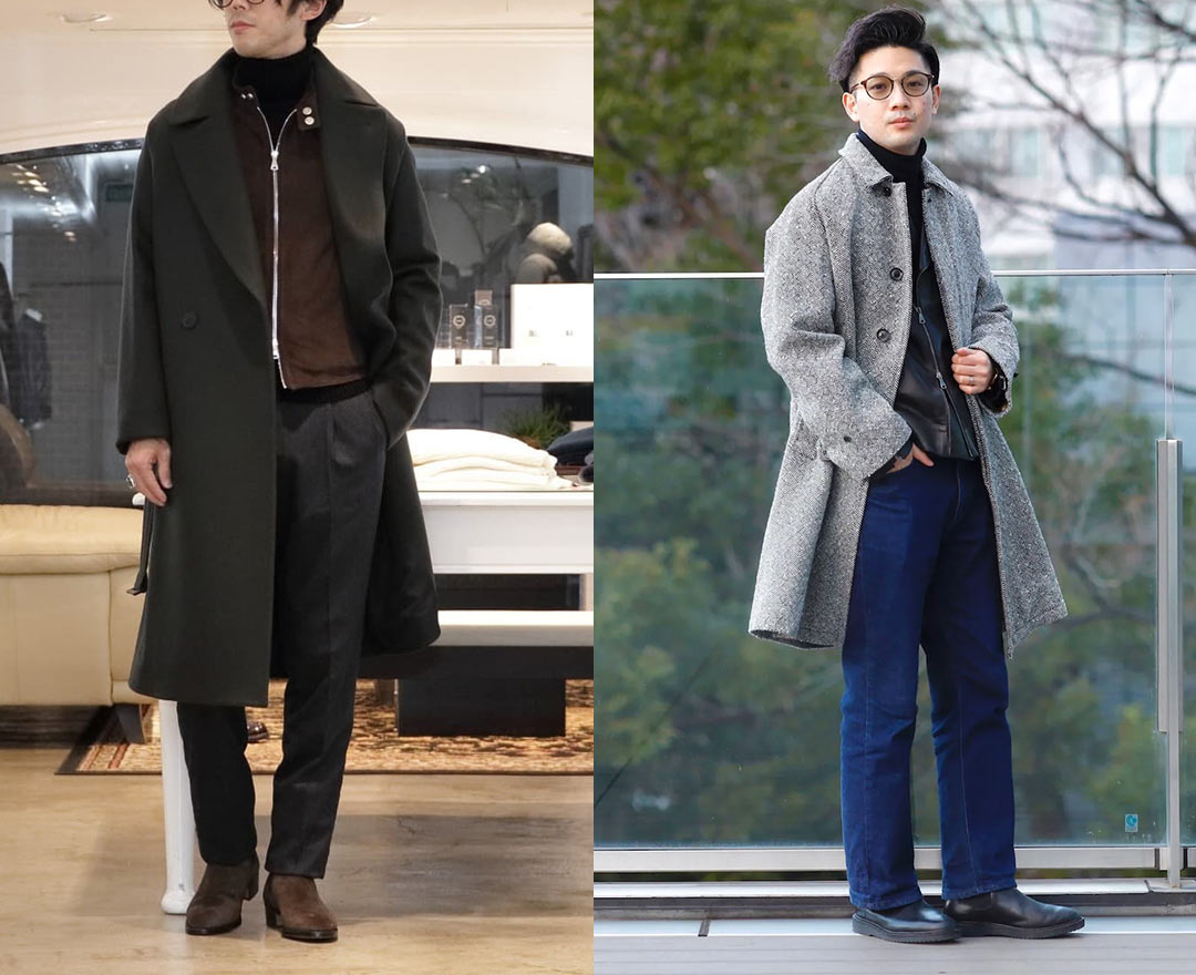 1枚着だと厳しい真冬は、レザージャケットをインナーにするのも1つの手。アウターの中でも特にコートは合わせやすいです。