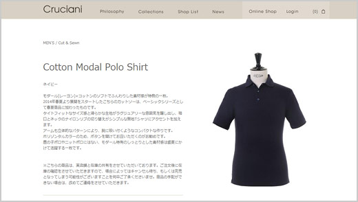 タイト&フィットなシルエットを基本としており、体のラインに沿った美しいシルエットを実現。毎年定番の鹿の子ポロシャツに加え、2014年からはラグジュアリーなレーヨン×コットン素材も展開。