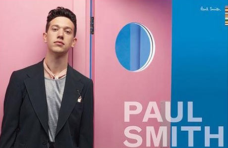 外側と内側に違うカラーレザーを使った、ポールスミスらしい遊び心を表現した2つ折り革財布。右下にはロゴがさりげないアクセントに。