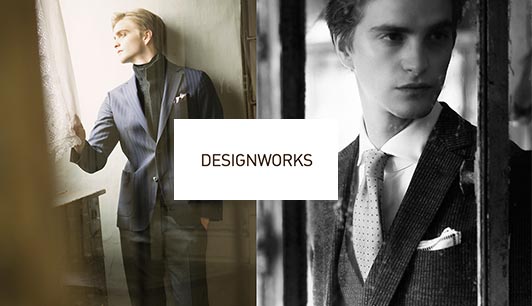 「イギリスの正統派クラシックにモードな感性をプラスしたスタイル」を提案するデザインワークス。日本人体型に合わせた英国トラディショナルスーツという言葉が似合います。