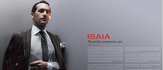 ISAIAはクラシコイタリア協会に属する歴史ある名門サルトであり、カッティング技術は”身にまとう芸術品”とまで評価されているイタリア随一のテーラー。