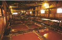ドラムはタイコとも呼ばれ、写真のように木製のものから金属製のものまで素材や大きさもさまざま。大規模なタンナーでは10以上のドラムを所有している。