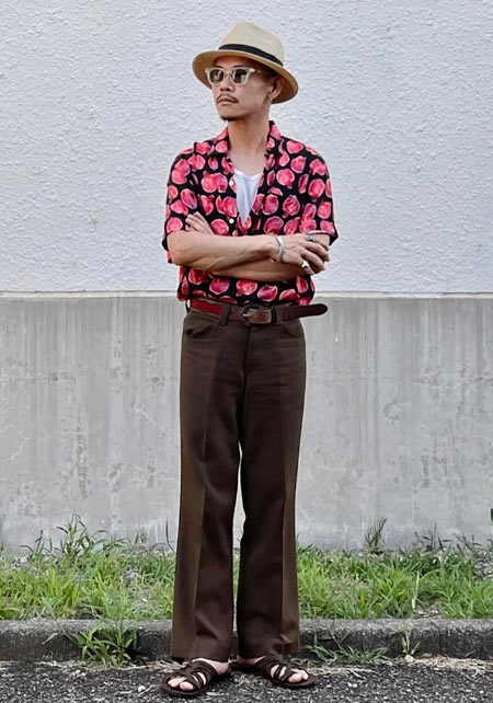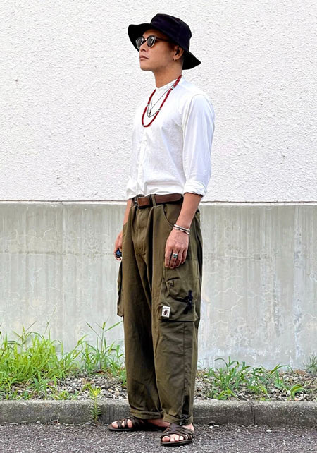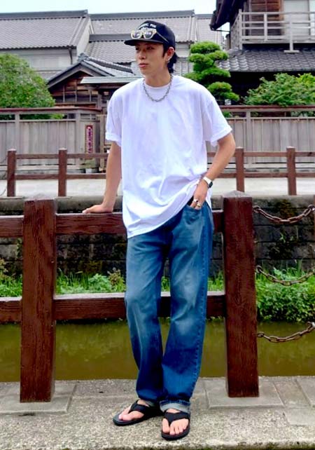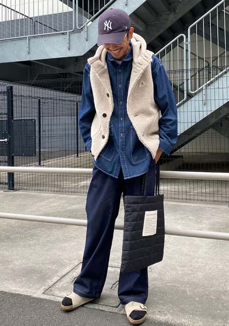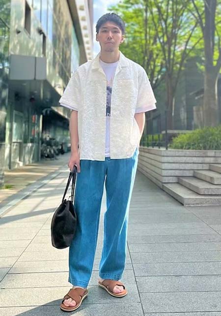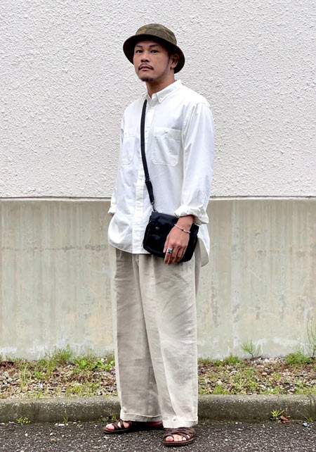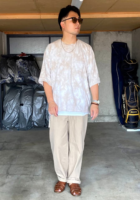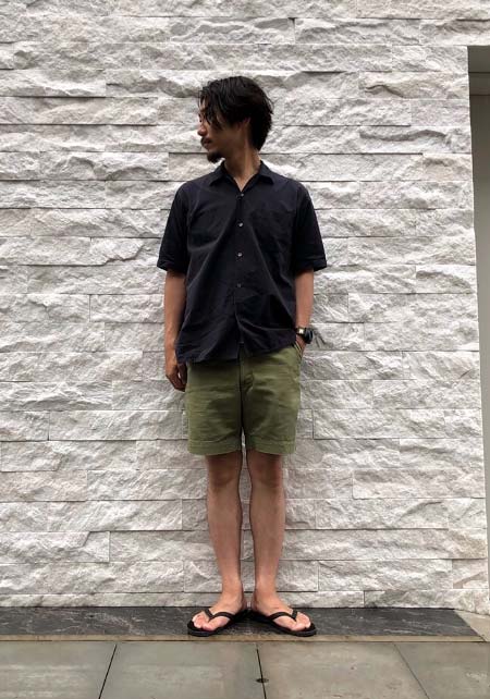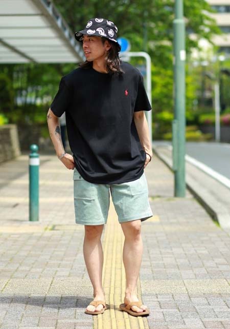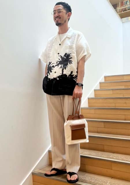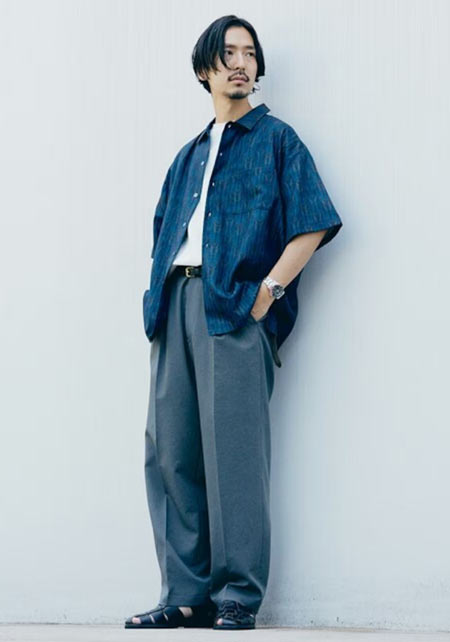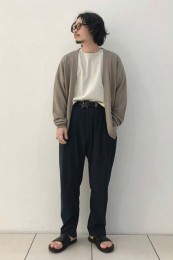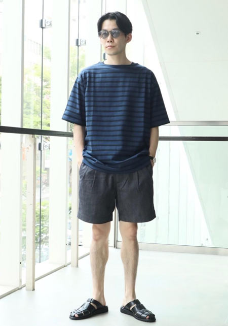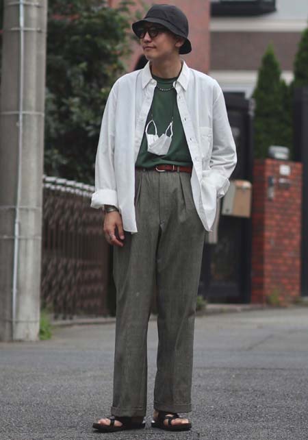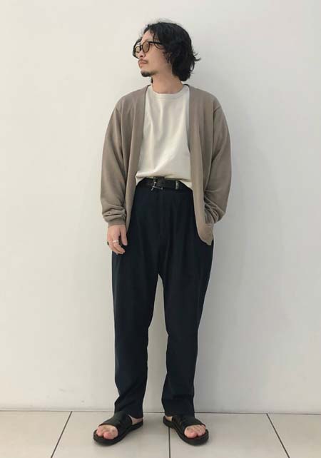 アイランドスリッパのレザーサンダル×おしゃれな着こなし