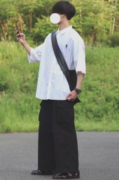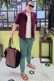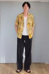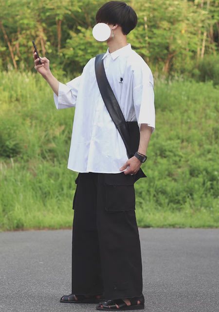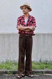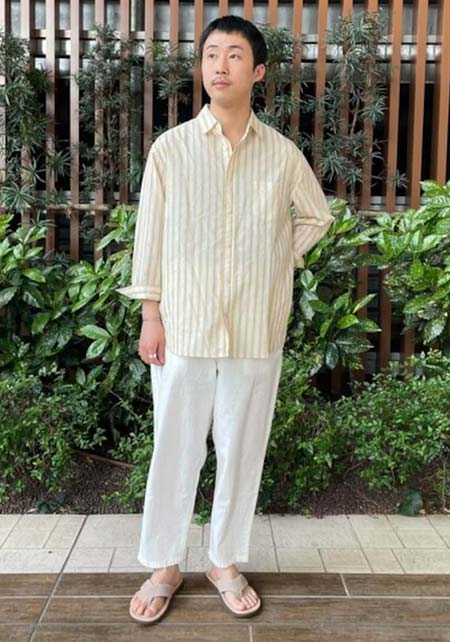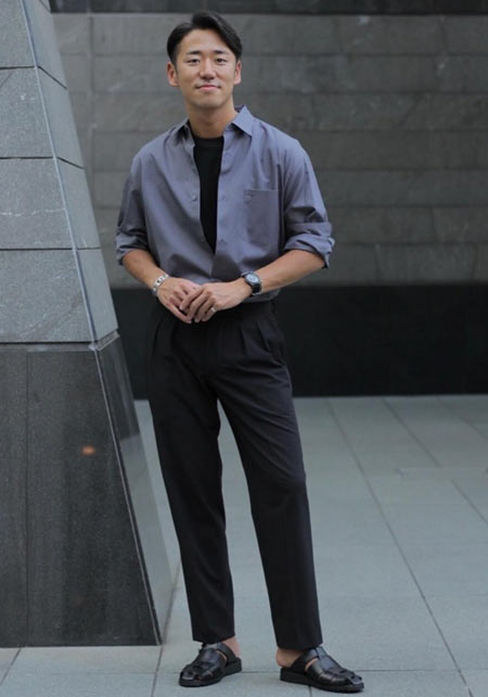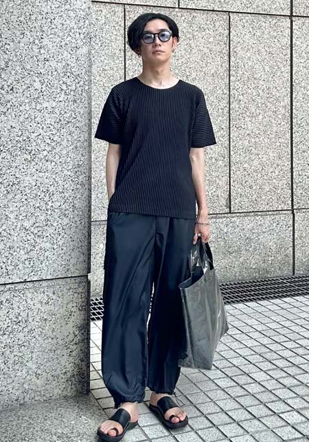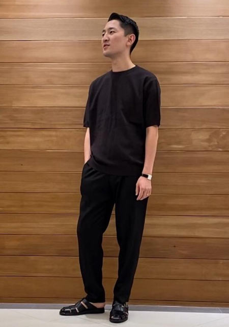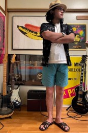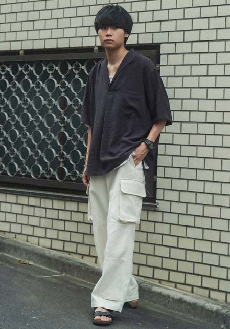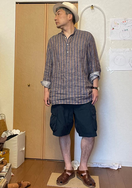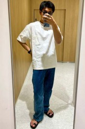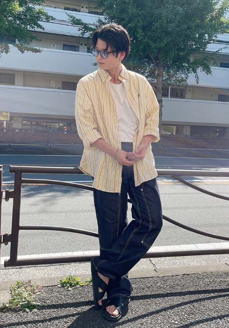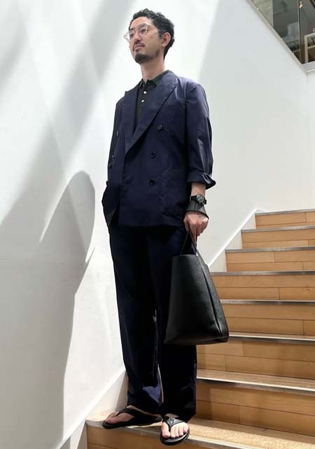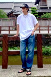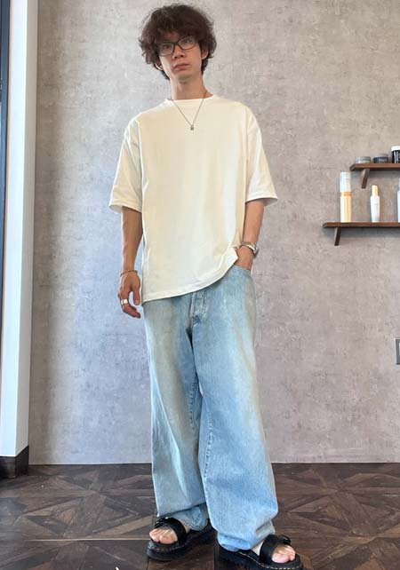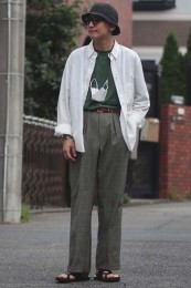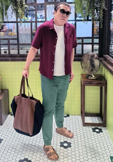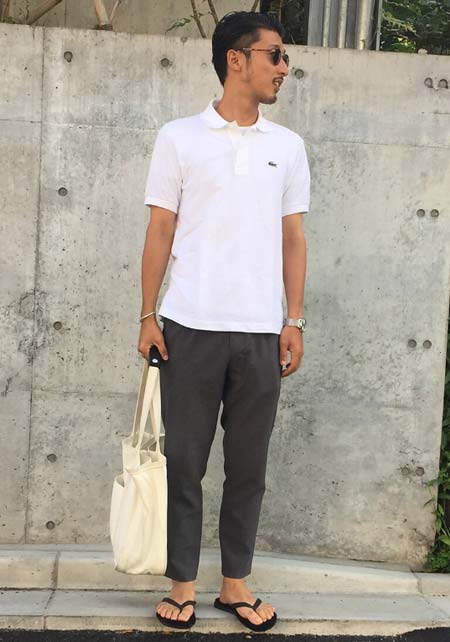 アイランドスリッパのレザーサンダル×おしゃれな着こなし