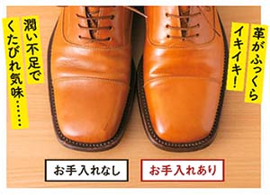 まず簡単にできる日常的ケアは帰宅後に。そして潤いと栄養するケアは定期的に行います。お手入れすれば、もちろん靴も長持ちします。