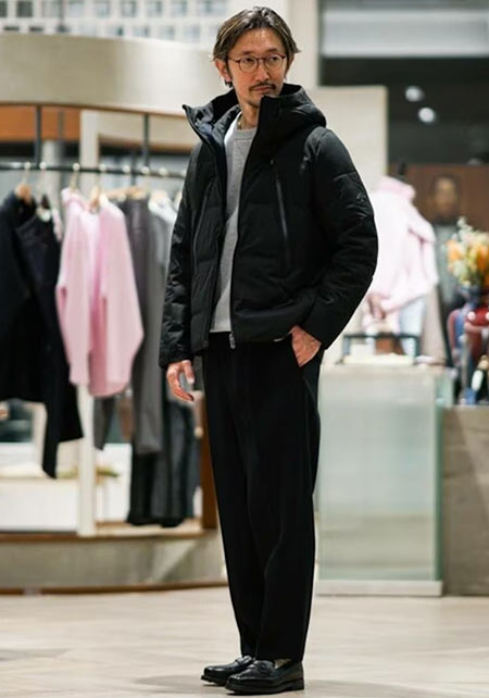 スリムなのでダウンやコートを重ね着し、フードだけを出すという着こなしには持ってこい。