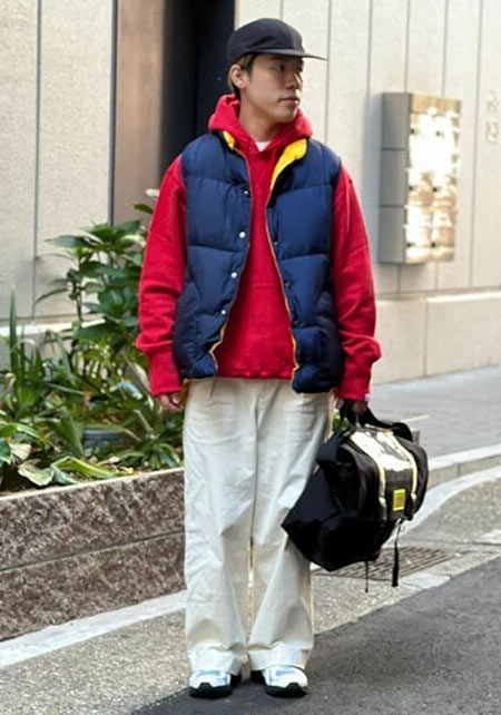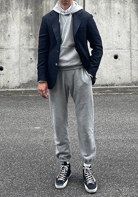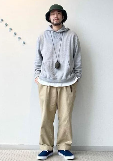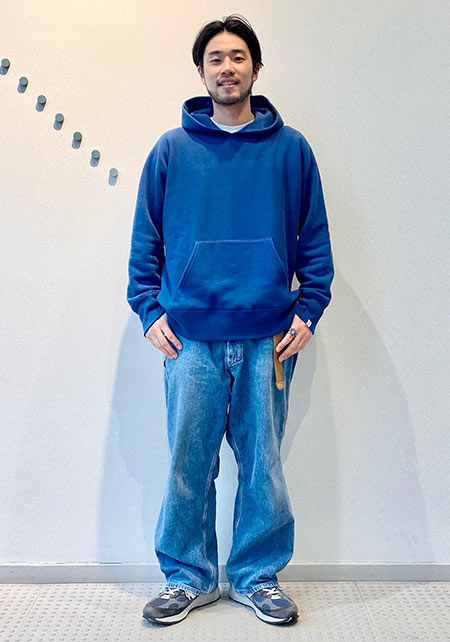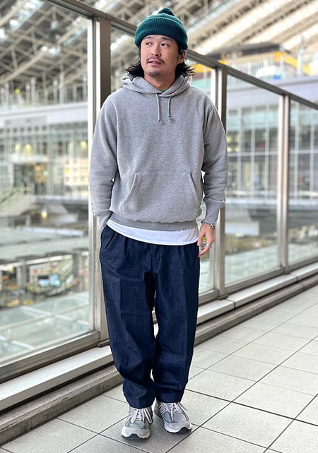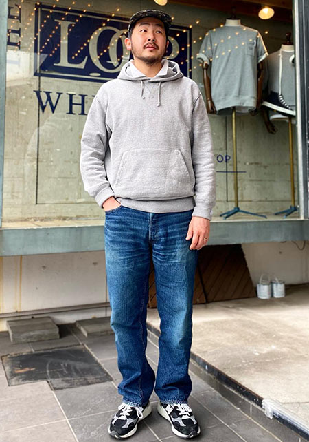 ループウィラーのプルオーバーパーカー×コーデ例
