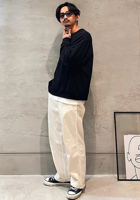 ループウィラーのクルーネック×コーデ例