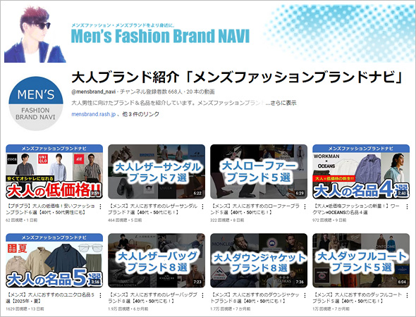 当サイトのYouTubeチャンネルです。大人男性に向けた人気ブランドの紹介、そしてユニクロや最旬ファッションブランドの名品の紹介などをしています。