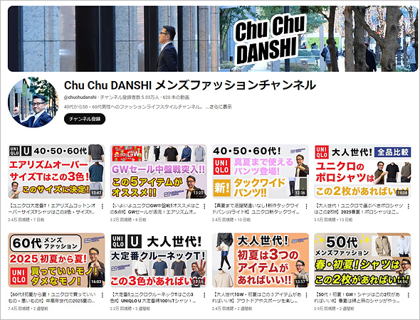ユニクロを中心に、無印、GU、ワークマンなど、コスパ服を使った大人向けコーディネートを提案しているチャンネルです。