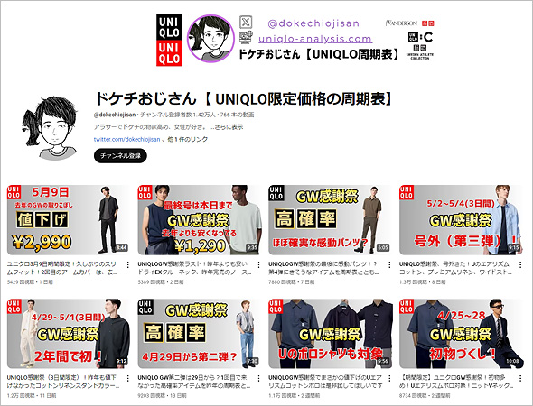 ユニクロの限定価格情報を中心に、ユニクロ服のレビューなども紹介してらっしゃるチャンネルです。