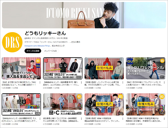 デザイナーの「リッキーさん」が、服語りからコーデの提案まで多種多様に配信しているチャンネルです。