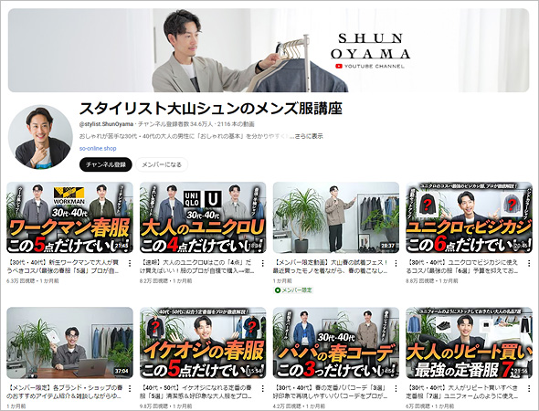 大山シュンさんが、30代・40代男性に向けてのコーディネートを提案しているチャンネルです。